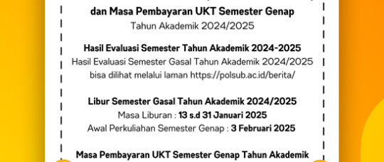 Setelah melaksanakan perkuliahan semester gasal TA 2024/2025, mahasiswa akan melakukan evaluasi untuk memperbaiki nilai yang kurang dan melaksanakn perwalian untuk mengetahui nilai akhir di semester gasal. Setelah melaksanakan itu semua tiba saatnya untuk menjalankan libur semester, namun tidak lupa pada waktu liburan mahasiswa juga melaksanakan pembayaran UKT agar bisa melanjutkan perkuliahan di semester berikut nya.